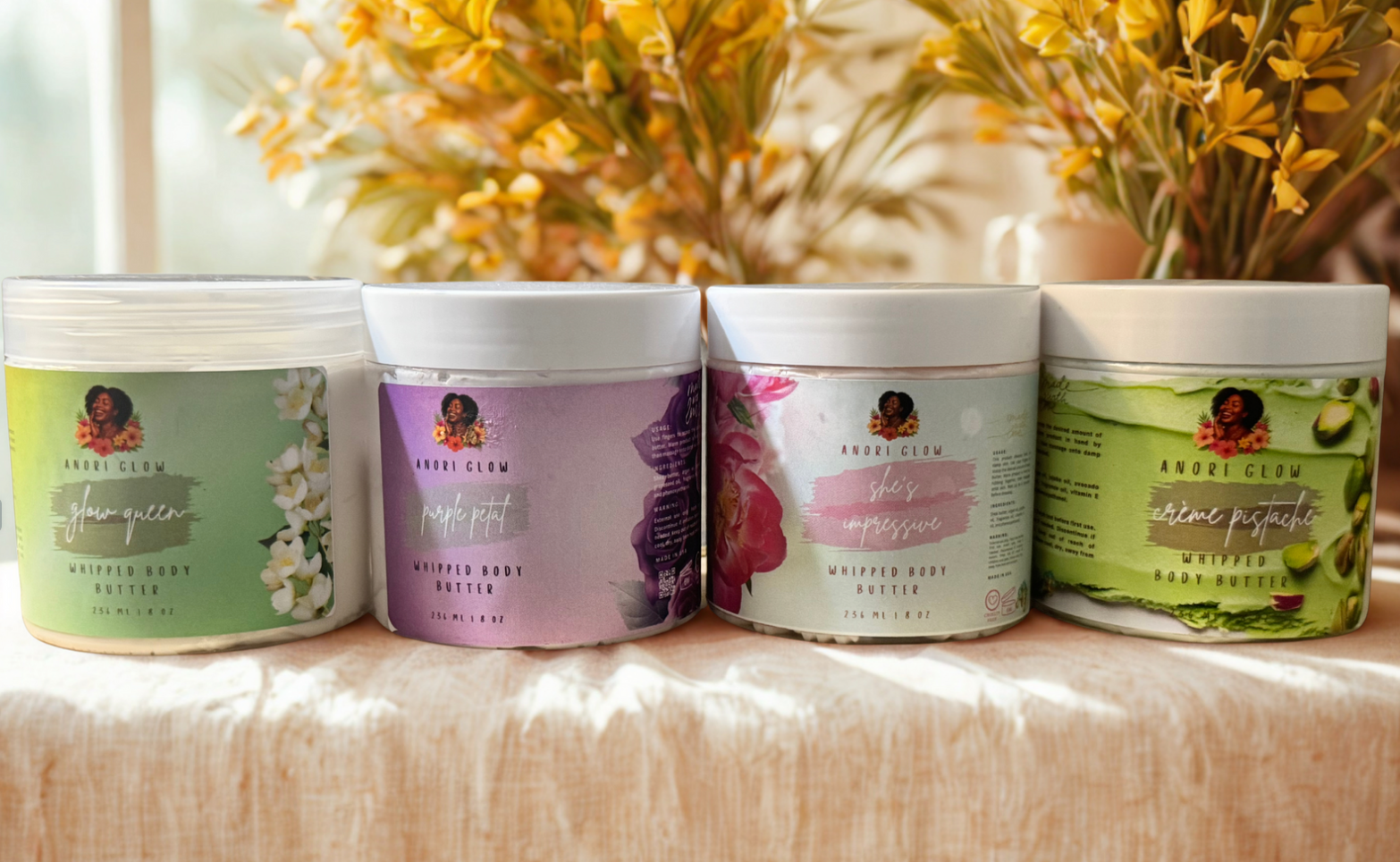 At Anori Glow, we turn self-care into a sensory experience. Our whipped body butters are crafted to nourish deeply, smell divine, and leave you feeling confident, radiant, and remembered. Every jar is a celebration of softness, scent, and soul; created to make your skin look delicious and your spirit feel indulged.